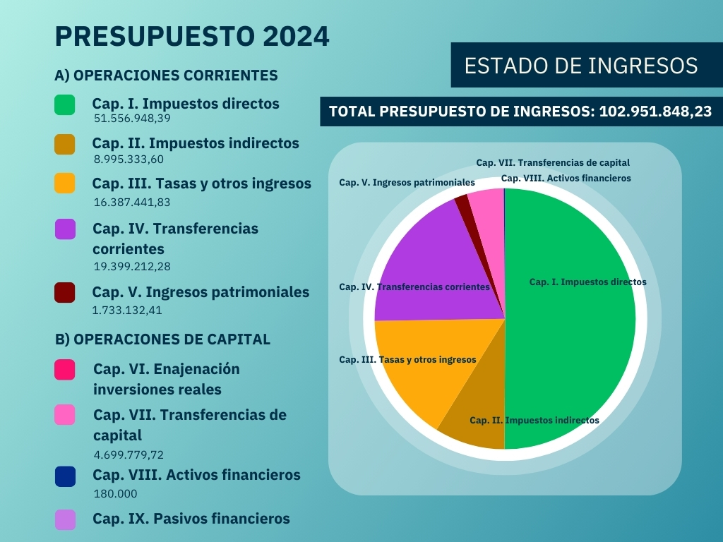 Respecto a los ingresos, el objetivo para este mandato es reducir la presión fiscal sobre las familias y las empresas. “En definitiva”, señala Marcos Zurita, “que los vecinos paguen menos impuestos gracias a la búsqueda de otro tipo de recursos e ingresos para las arcas municipales, sin que esto suponga mayor presión impositiva a la ciudadanía. El dinero de los vecinos, dónde mejor está, es en sus bolsillos”. En este sentido, el presupuesto sienta algunas bases, como la reducción de ingresos por la tasa de basura (2.460.000 de euros en ingresos, frente a los 4,5 millones de recaudación del 2023) o por la tasa por servicios de prevención y extinción de incendios (eliminada, cuando en 2023 se recaudó 1,4 millones por esa misma tasa). En resumen, solo en estos dos conceptos los vecinos se han ahorrado casi seis millones de euros.