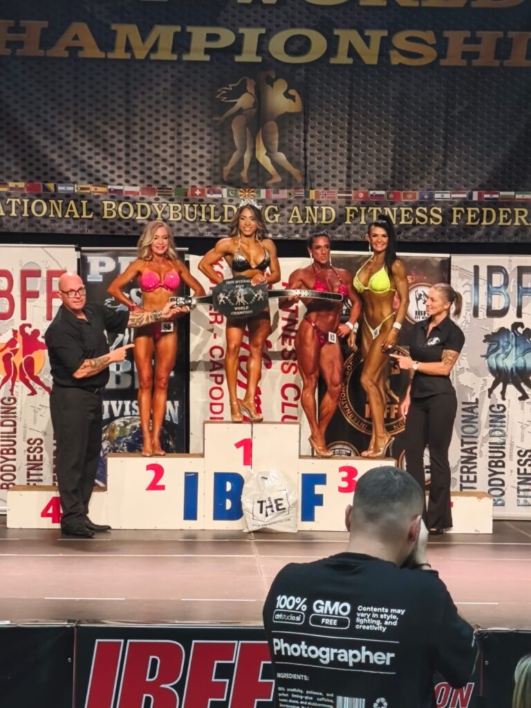 Representando a España en el mundial IBFF en Eslovenia ha quedado campeona del mundo en su categoría y ha sido Campeona del Mundo absoluta de todas las categorías femeninas.