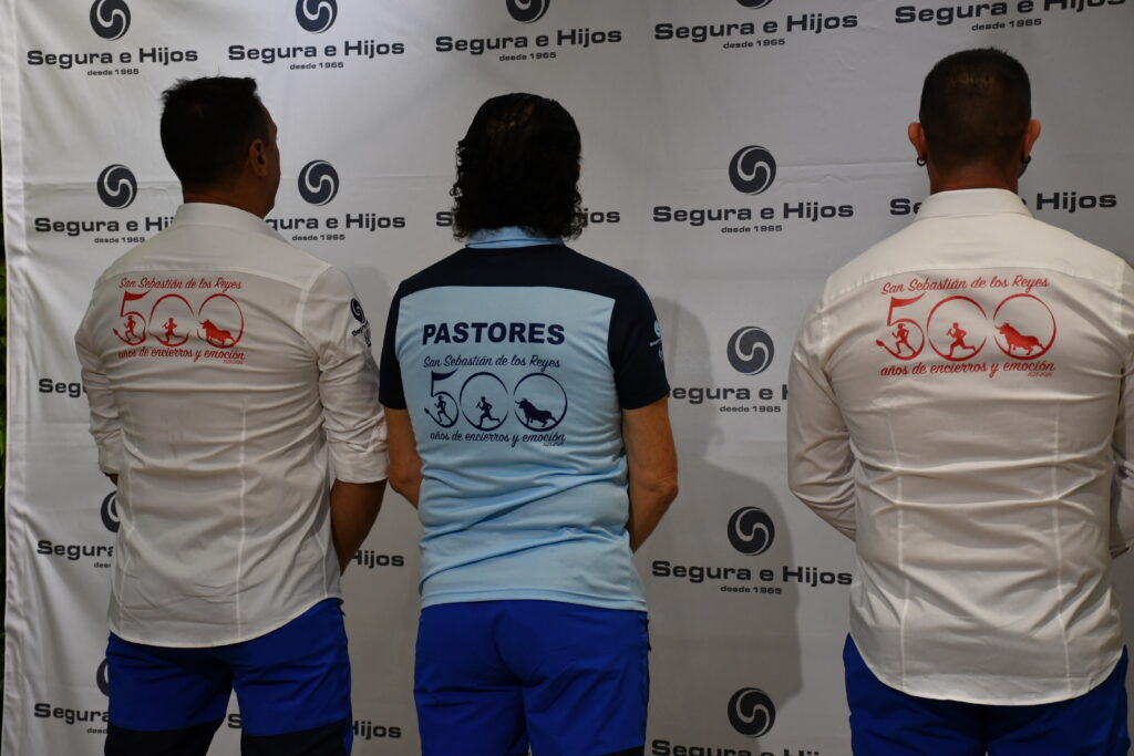 Este viernes ha tenido lugar la presentación oficial de la indumentaria de los pastores para los encierros de San Sebastián de los Reyes 2025. Al evento han acudido varios representantes del grupo de pastores responsables de la organización y el buen desarrollo de los encierros de Sanse, el concejal de Festejos, Carlos Bolarín y representantes de Segura e Hijos, quien tiene el honor de tirar uno de los cohetes de inicio de los encierros este año 2025.