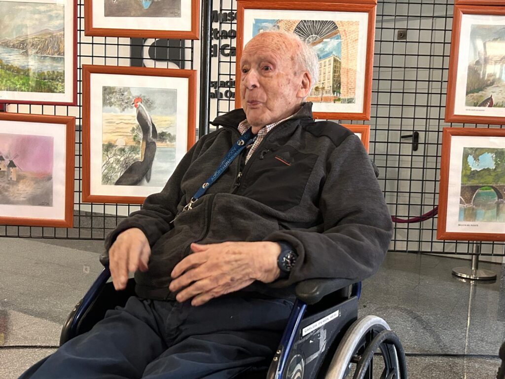 A sus 101 años, sigue pintando cada día. Lo hace sentado, con calma, frente a una mesa en la residencia donde vive, rodeado de pinceles, papeles y recuerdos.