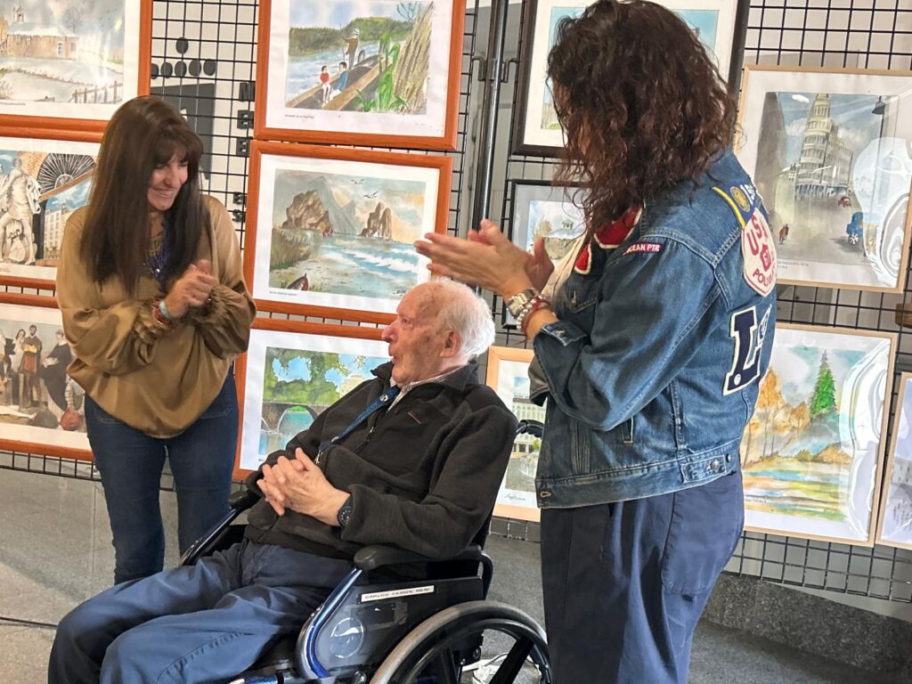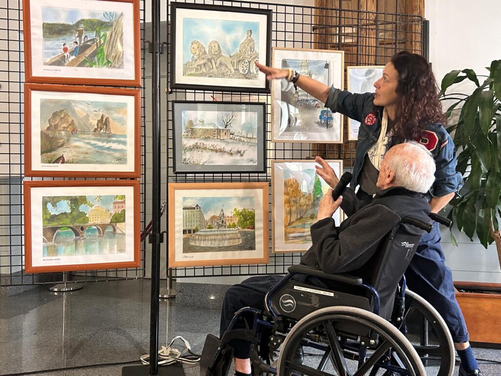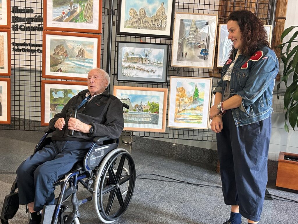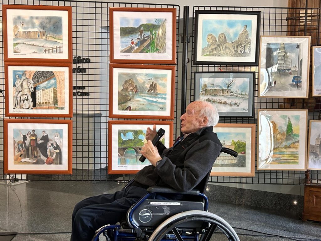 Magazine SLV. San Sebastián de los Reyes. Un vecino de San Sebastián de los Reyes a sus 101 años ha presentado su exposición de pinturas en acuarela ‘100 años y más de color’ en El Caserón