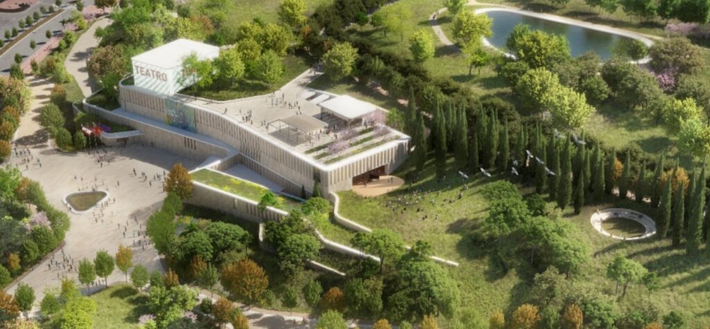 El edificio, que contará con una inversión de 11,5 millones de euros, se integrará completamente en su entorno natural, con una cubierta ajardinada que dará continuidad a las zonas verdes adyacentes. El diseño, a cargo de los reconocidos arquitectos Fernando Porras y Lorenzo Fernández Ordóñez, ha sido pensado para maximizar la funcionalidad del teatro, incluyendo un atrio multifuncional con un gran balcón para eventos y exposiciones, y un escenario preparado para acoger grandes producciones escénicas.
